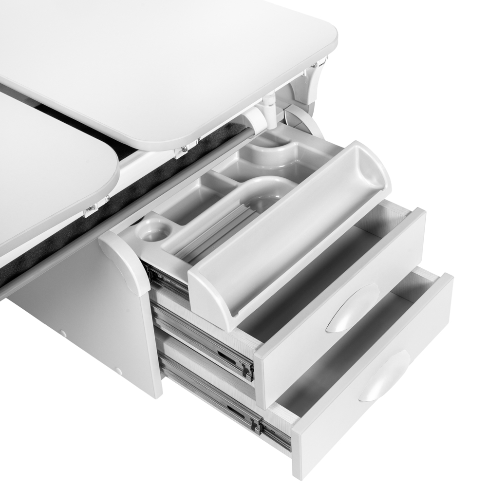 В тумбе ТСН.05 так же предусмотрен выдвижной пластиковый ящик-органайзер. Это отличное решение для школьников и студентов, которые хотят организовать свое рабочее место. Такой ящик помогает сохранять порядок на столе и обеспечивает быстрый доступ к нужным предметам. В нем можно хранить карандаши, ручки, маркеры, ластик, точилку и другие мелкие аксессуары. Кроме того, ящик-органайзер имеет различные отсеки и отделения, что позволяет упорядочить предметы по категориям и облегчает их поиск.